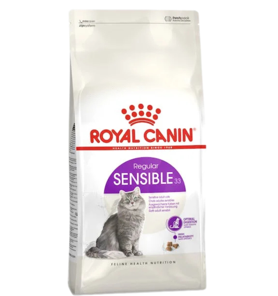 - الهضم الأمثل: بعض القطط لديها حساسية في الجهاز الهضمي تؤدي إلى براز لين. يحتوي SENSIBLE 33 على مزيج حصري من العناصر الغذائية لدعم الأمن الهضمي الأمثل (L.I.P. *) والبريبايوتكس (بما في ذلك FOS) لنباتات معوية متوازنة.