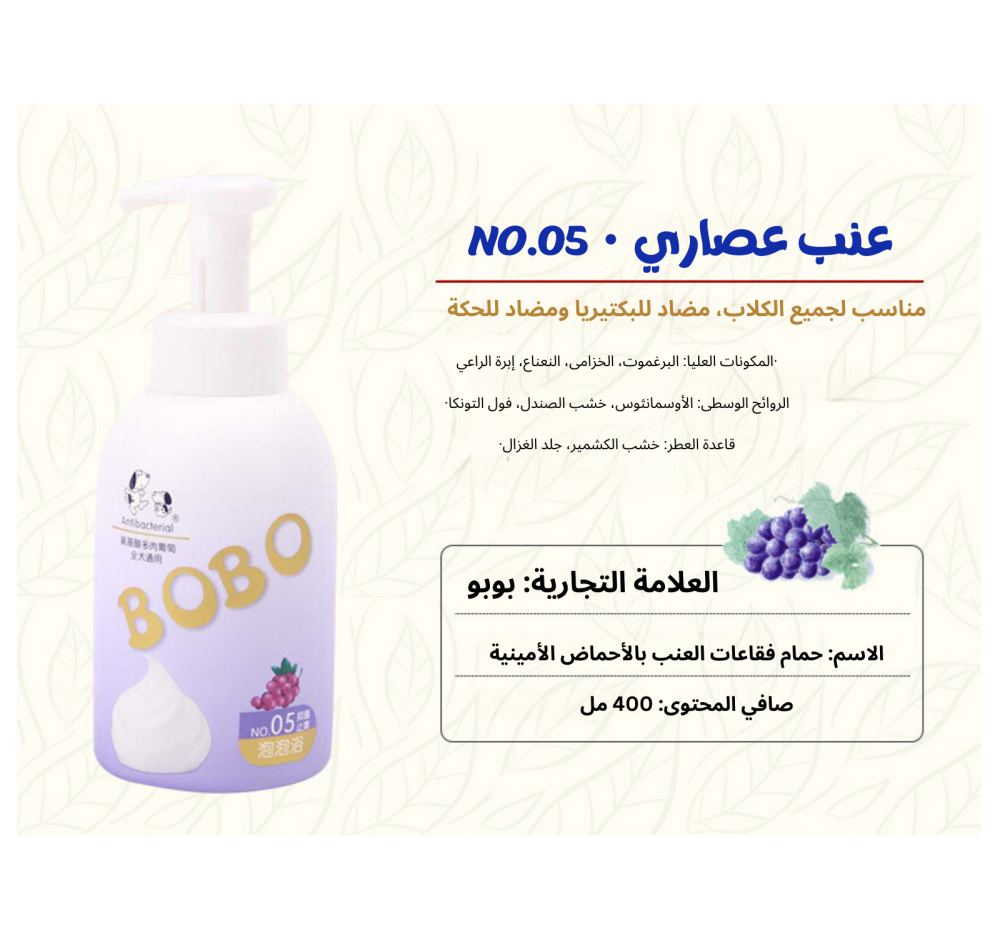 شامبو BOBO للكلاب عنب عصاري رقم 05 (400) مل