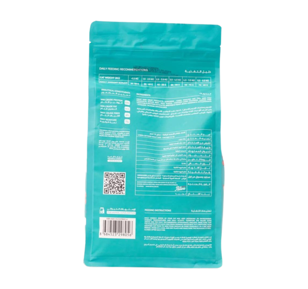 طعام القطط البالغة يحتوي على ألياف وظيفية يدعم الفلورا المعوية