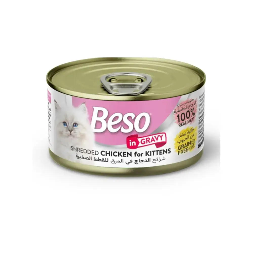 بيسو (Biso). تم إعداد هذه الوجبة بعناية فائقة لتلبي الاحتياجات الغذائية الفريدة للقطط في مرحلة النمو (Kitten)، حيث تجمع بين المذاق اللذيذ للدجاج الحقيقي والفوائد الغذائية الضرورية لتطورها السليم.